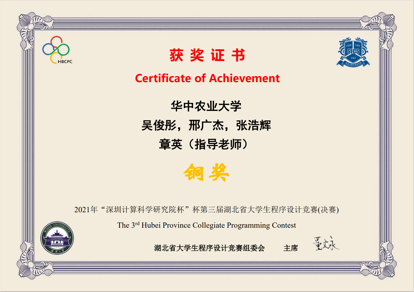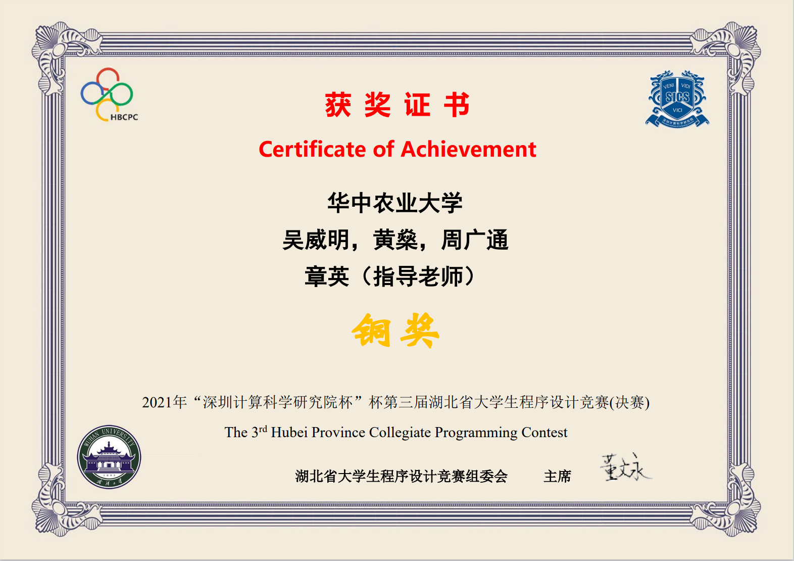 2021年第三届湖北省大学生程序设计大赛——铜奖