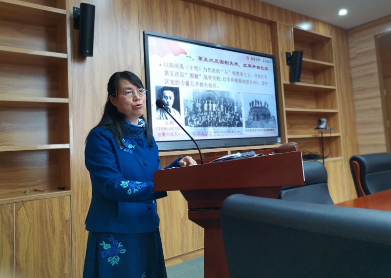 同书琴老师分别从第五次反围剿失败,红军开始长征;血战湘江;通道转兵;遵义会议;四渡赤水;万水千山只等闲;三军会师,长征胜利;长征精神;弘扬伟大长征精神,走好新时代长征路等9个部分进行了精彩讲授。