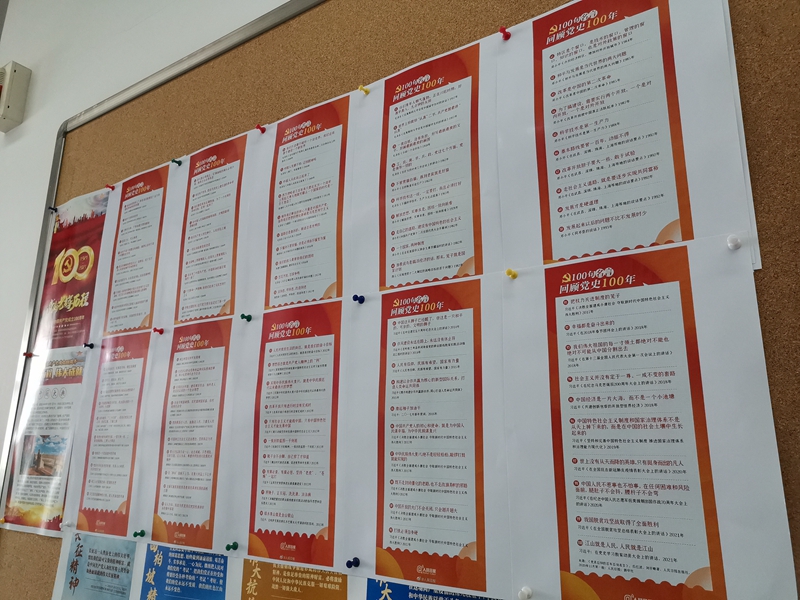 3月28日上午,学院3楼大厅公告栏,“100句名言回顾党史100年”主题图片展在此展出。