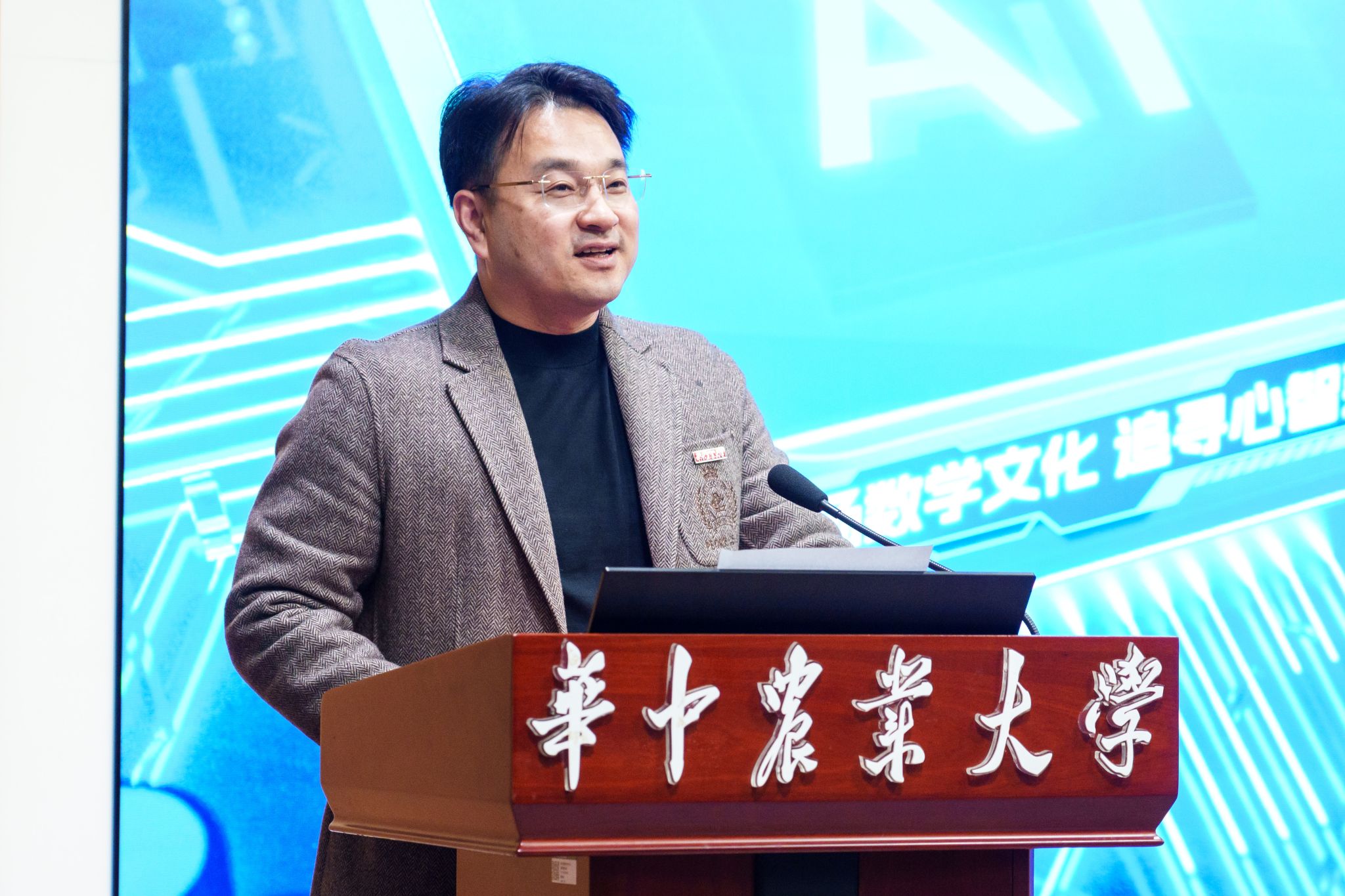 李大鹏在开幕致辞中介绍了学校办学情况,回顾了麻豆 数学文化建设历史,并强调了数学的重要性。他谈道,今年的数学文化节以“数学与人工智能”为主题,强调数学、AI在推动科技发展、社会进步中的核心作用,它不仅仅是一场学术盛宴,更是一次激发创意和智慧的交流平台。他希望师生们在体验和探索中感受数学与人工智能深度融合的魅力,激发开创未来的磅礴力量。