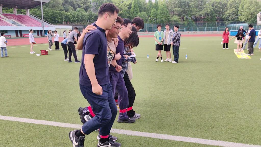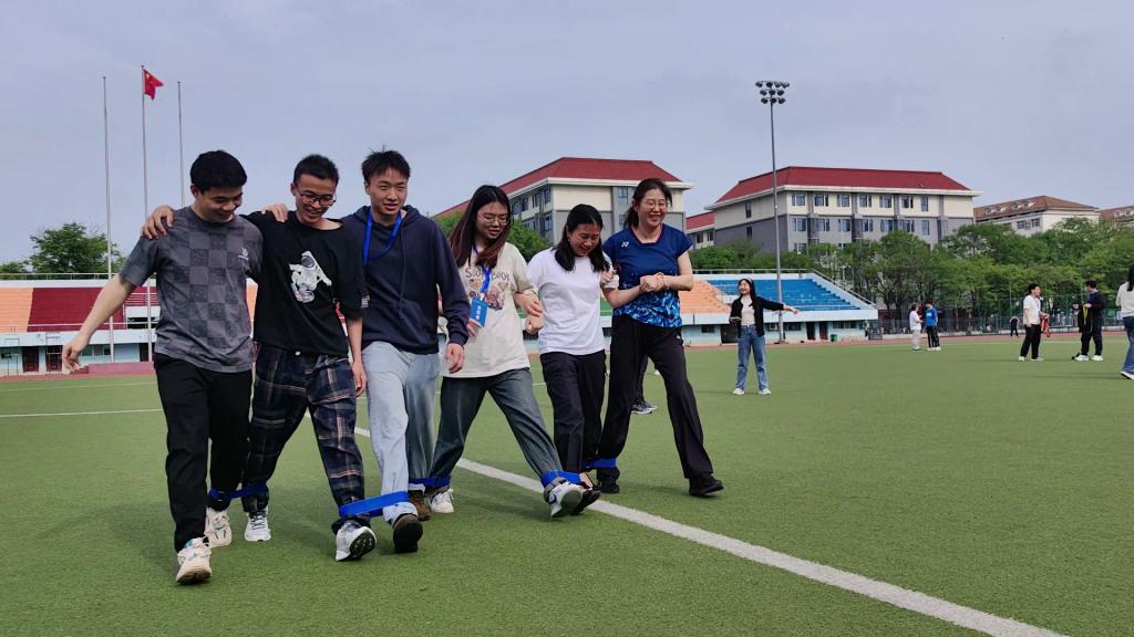 师生融乐团体赛道上,由师生共同组队参与的情况更加热烈。队员们共同挑战双足智行项目,经过不断磨合最终大多数队伍能快速抵达终点,智跃长绳游戏中,同学们纷纷展现出了出色的团队默契,摇绳的频率与跳跃的节奏逐渐统一,最终收获了整整齐齐跃过长绳的喜悦。