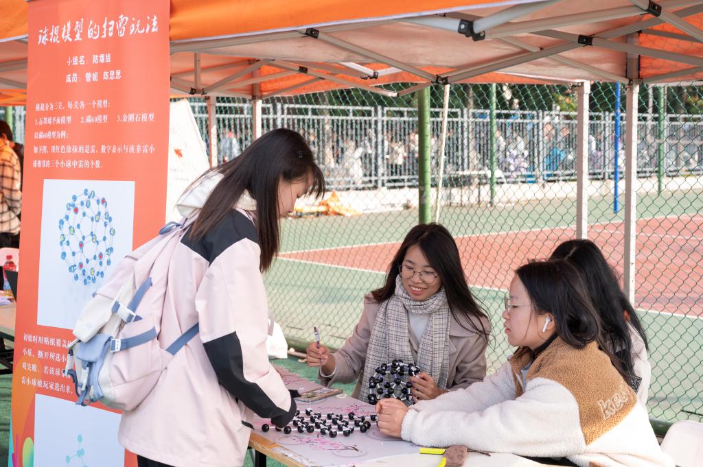 第六届数学文化节之“玩转数学”擂台赛在此举行,11项各具特色的数学游戏吸引了数百名师生前来体验和挑战,欢笑声不时响彻运动场。