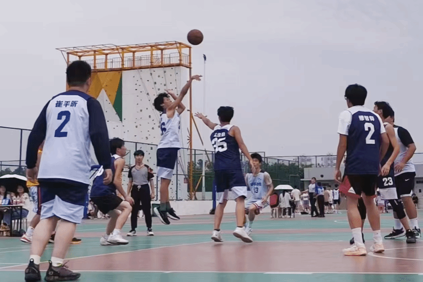 (石钟玉在“新生杯”篮球赛赛场上角逐)