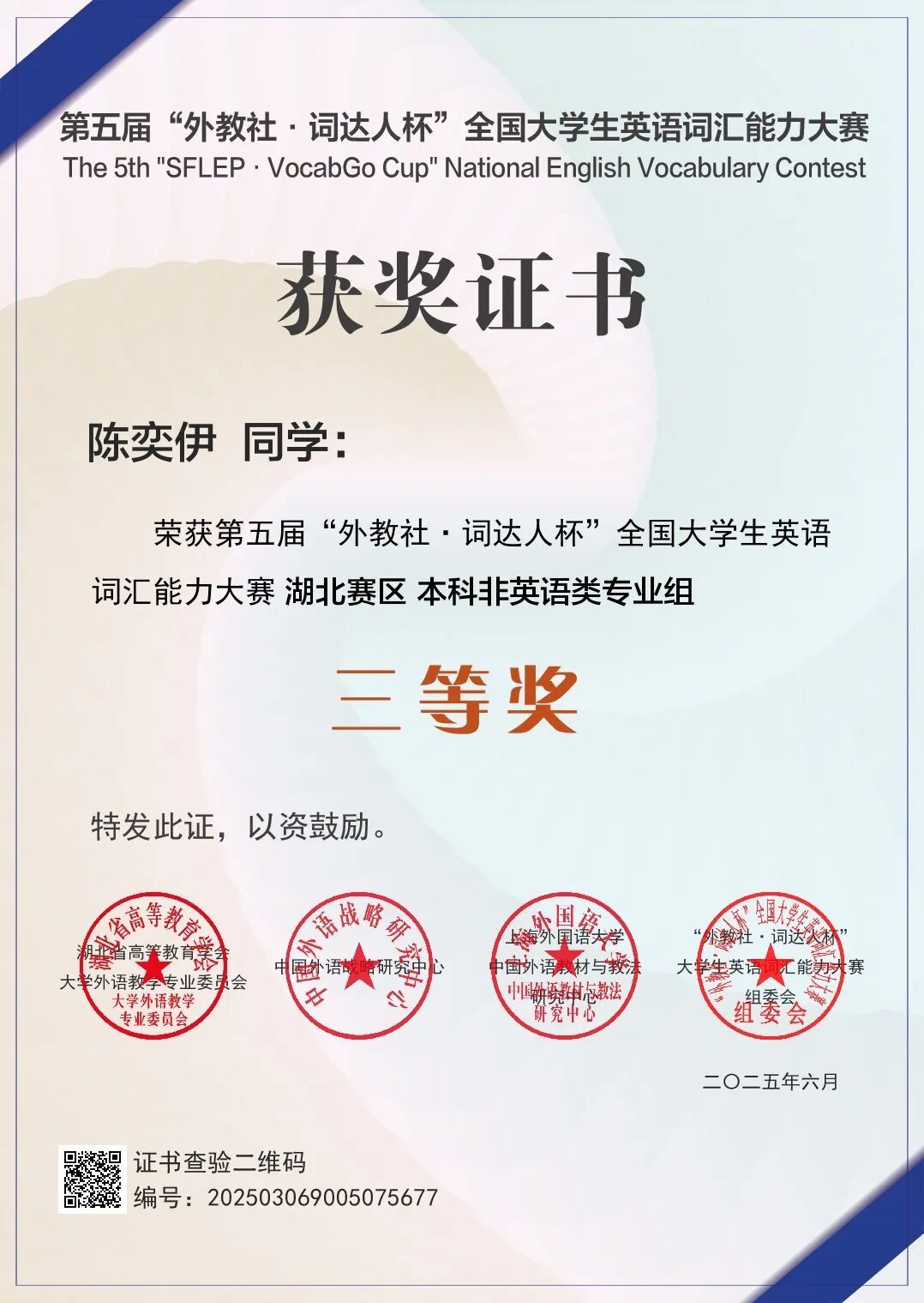 最后,陈奕伊分享道:“《球状闪电》中有一句话:‘美妙人生的关键在于你迷上什么东西’,我认为是那些让我真正着迷、甘愿为之倾注时间、承受枯燥甚至屡败屡战的事物,悄然塑造了此刻的自己。这份‘迷上’的珍贵,在于它让努力成为一种自发的奔赴,而非沉重的负担。所以如果此刻仍对前路感到些许模糊,请不必焦虑。青春最动人的部分,或许正是这份辽阔的可能。去大胆探索、试错,去遇见能让自己迷上的事物,然后,用自己的方式,坚定而从容地,去盛放它。每一次扎实的积累,每一回直面未知的勇气,都在默默重塑着未来的模样。前路漫漫亦灿灿,与所有前行者共勉。”