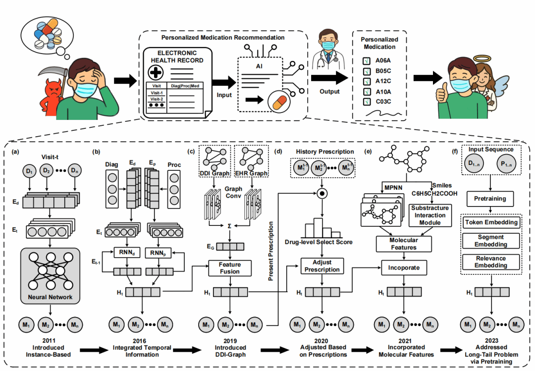 在科研领域,她同样表现突出。在导师的指导下,她阅读并整理了50余篇药物推荐相关领域的文献,从构思到实验再到写作,搭建包含15个Baseline的可复现实验框架,通过数据采样实验,量化系统性能曲线,她最终以共一第一作者的身份完成了学术论文《Advances in Deep Learning for Personalized Medication Recommendation: A Systematic Survey》,目前该论文已投递至相关期刊。