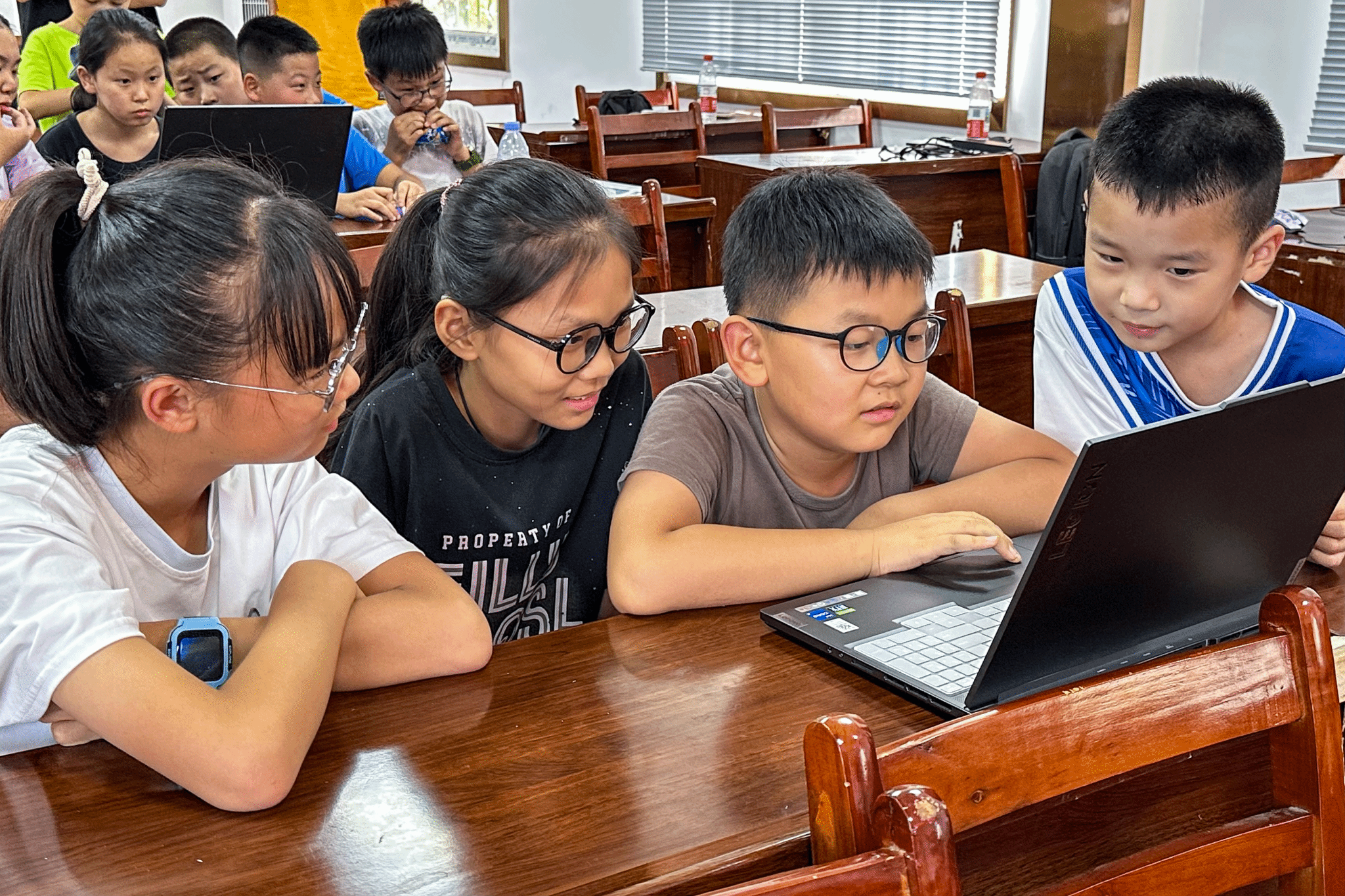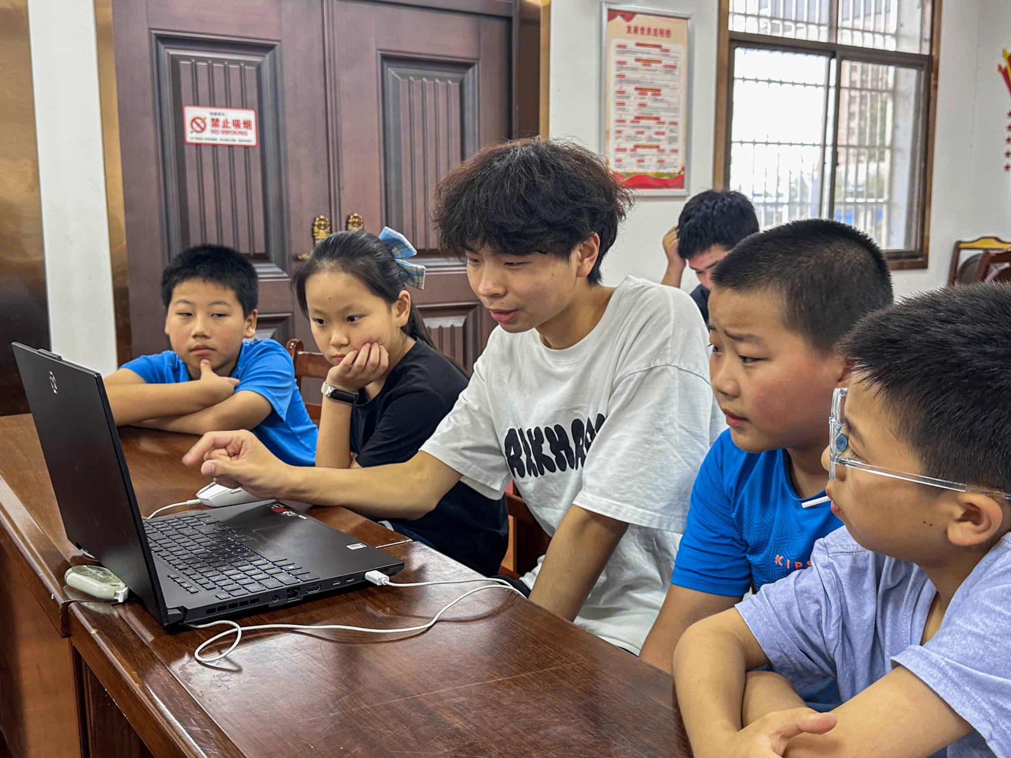 “小朋友们,电脑是由什么组成的呀?”“大家知道我们的手机内存是多少吗?”科技启蒙体验是本次服务的一大特色。服务队设计了人工智能与计算机趣味科普活动与少儿编程实操体验项目,通过互动演示和简单体验,让孩子们接触前沿科技,激发对数字世界的好奇心。