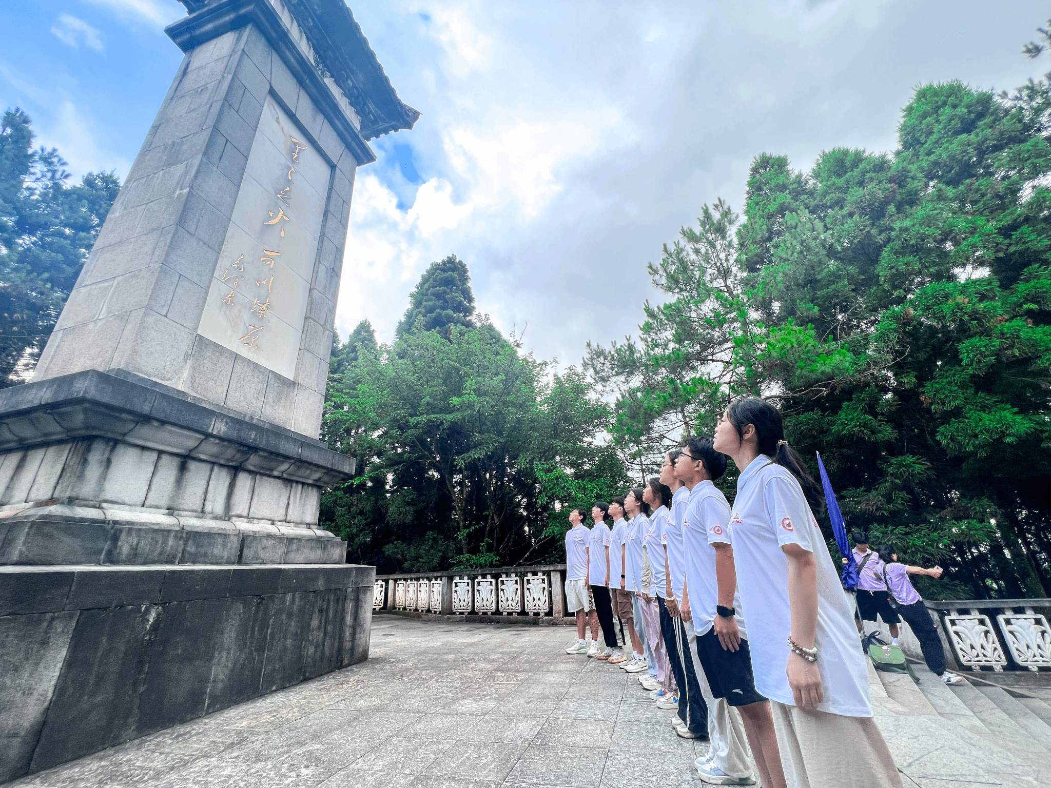 “巍巍井冈埋忠骨,灼灼初心照后人”实践队成员们怀着崇敬的心情来到井冈山革命烈士陵园。在纪念堂大厅前,队员们自动排成两列纵队。晨光掠过檐角,落在“死难烈士万岁”六个大字上,队员们的目光始终定格在字间,队列里只听得见风吹树叶的沙沙声。
