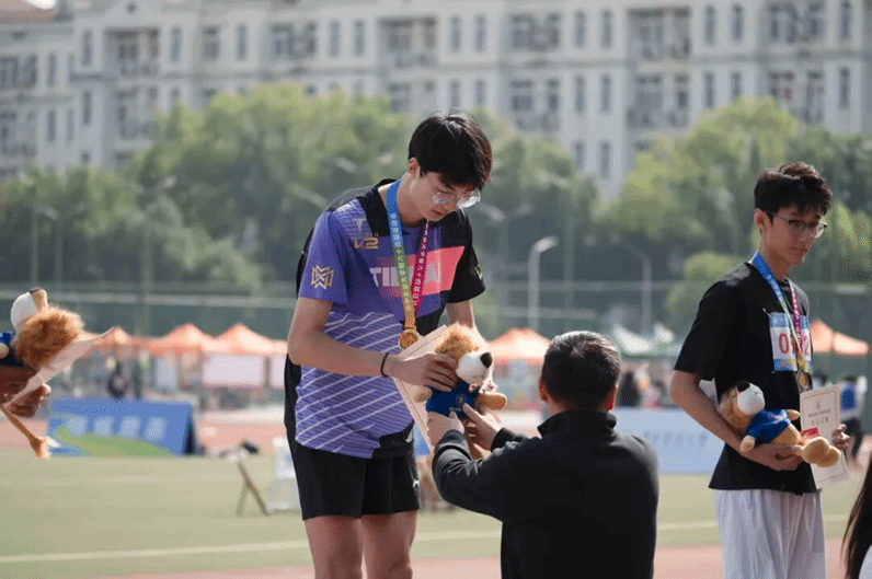 男子跳高区,程思源以绝对优势拿下学生组男子跳高第一,过杆的瞬间,成为了赛场最亮眼的剪影。